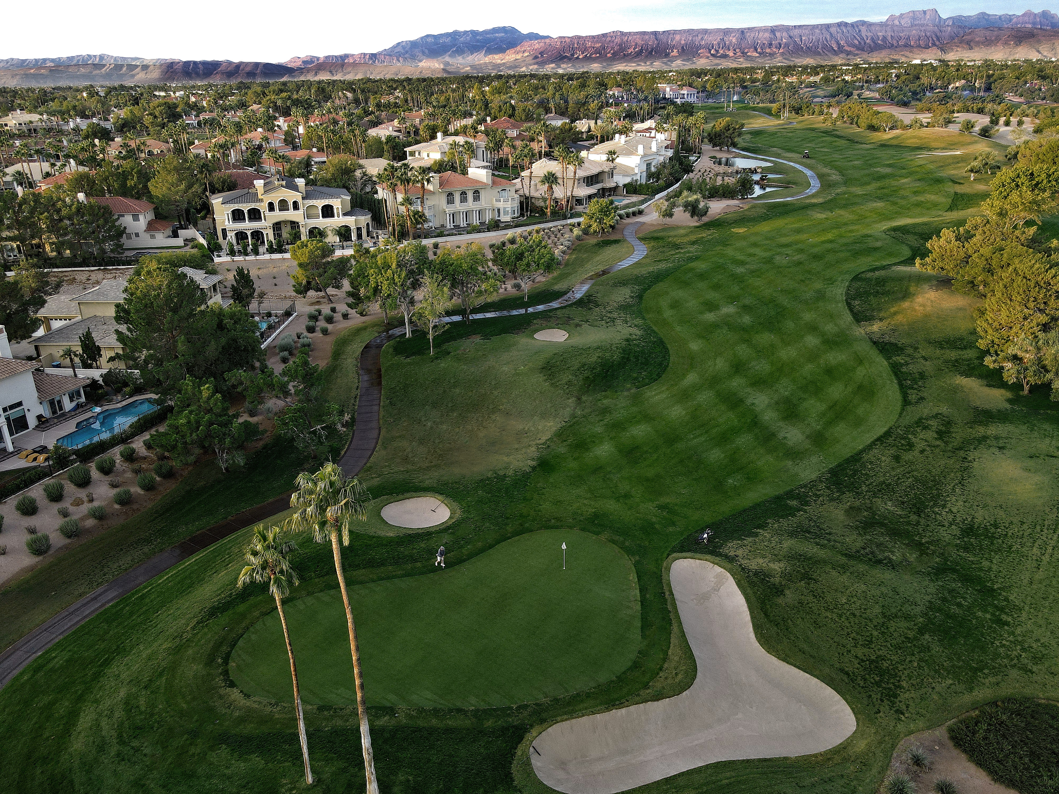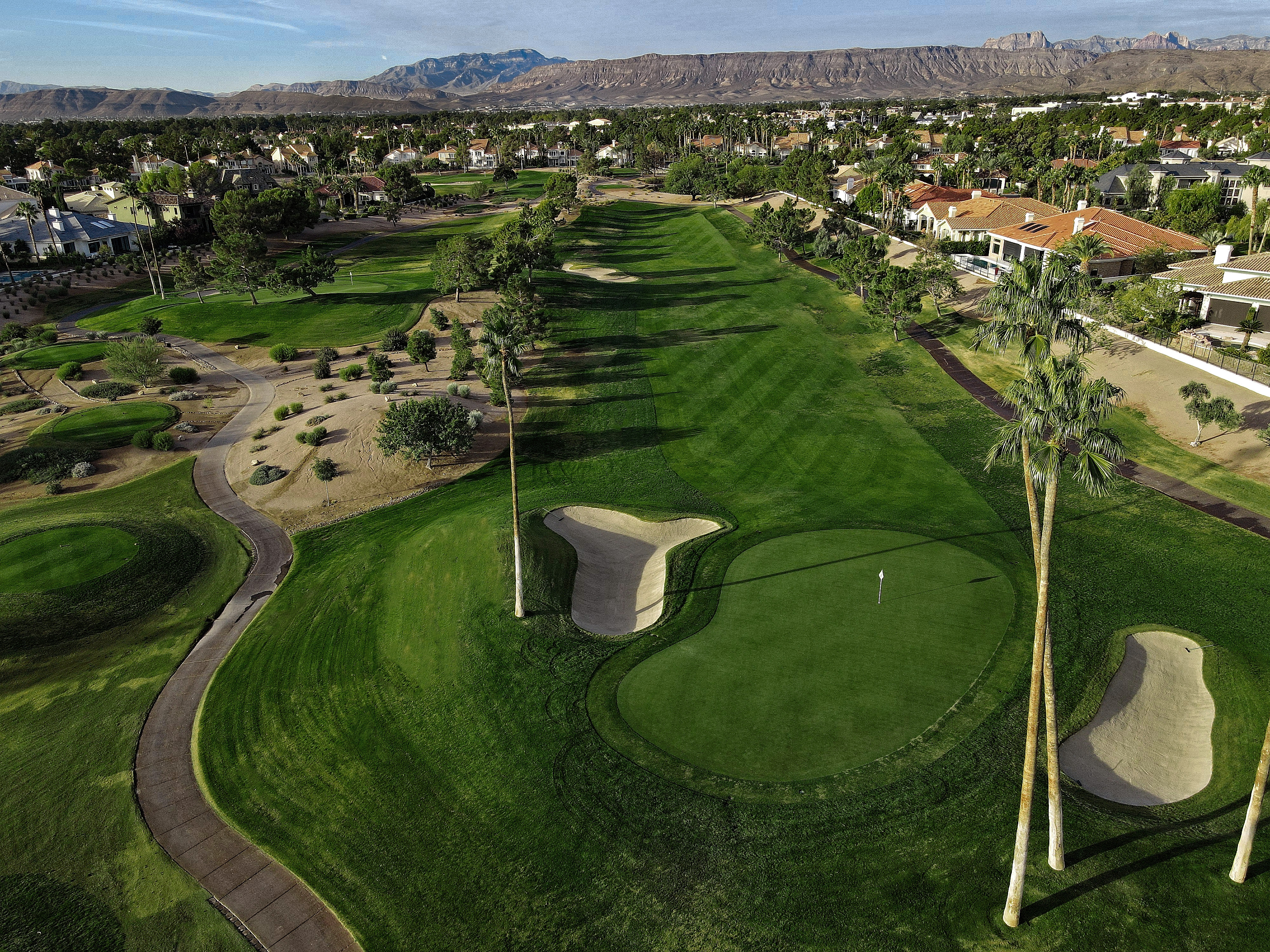 The golf course at Canyon Gate Country Club was designed by renowned golf architect, Ted Robinson. This 18-hole championship-caliber golf course is the ultimate expression of uncompromising standards that Ted Robinson guarantees. Located just minutes away from the Las Vegas Strip, the course features tranquil lagoons and carefully blends with the native Nevada landscape. Canyon Gate provides a challenging, yet entertaining, layout for golfers of all skill levels.